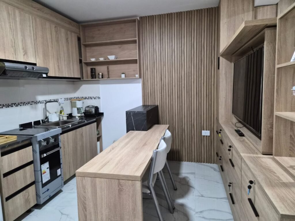 La iluminación cálida y la unificación de materiales contribuyen a generar armonía y sensación de amplitud, demostrando que en espacios pequeños el diseño estratégico es clave para lograr confort, funcionalidad y carácter.